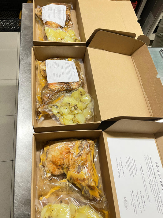 Gracias al envasado al vacío, tus pedidos se transportan de manera segura, protegidos del aire y la humedad, manteniendo la máxima calidad y reduciendo el riesgo de contaminación. Disfruta de la comodidad de recibir alimentos listos para calentar y servir, con la confianza de que están preparados y enviados con el mayor cuidado.